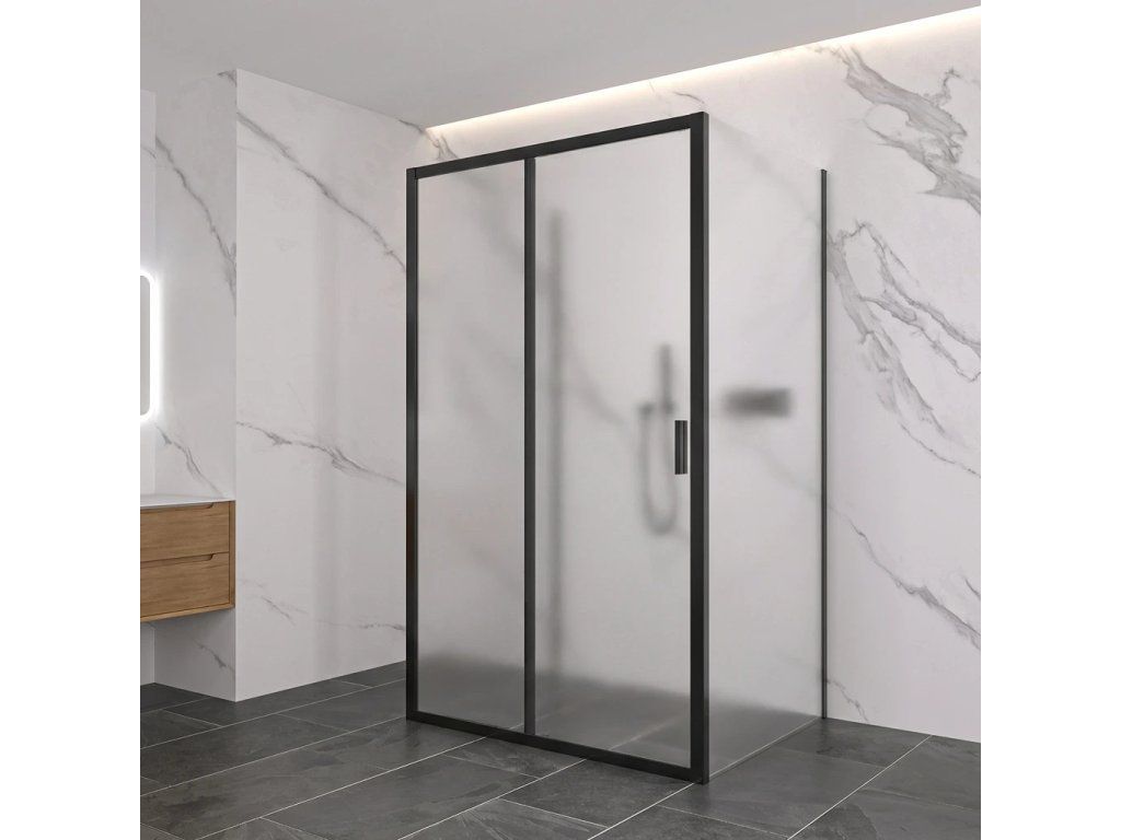 CERANO - Trostenný sprchovací kút Varone LINE UL/P - 6 mm - čierna matná, mliečne sklo - 150x100 cm - posuvný