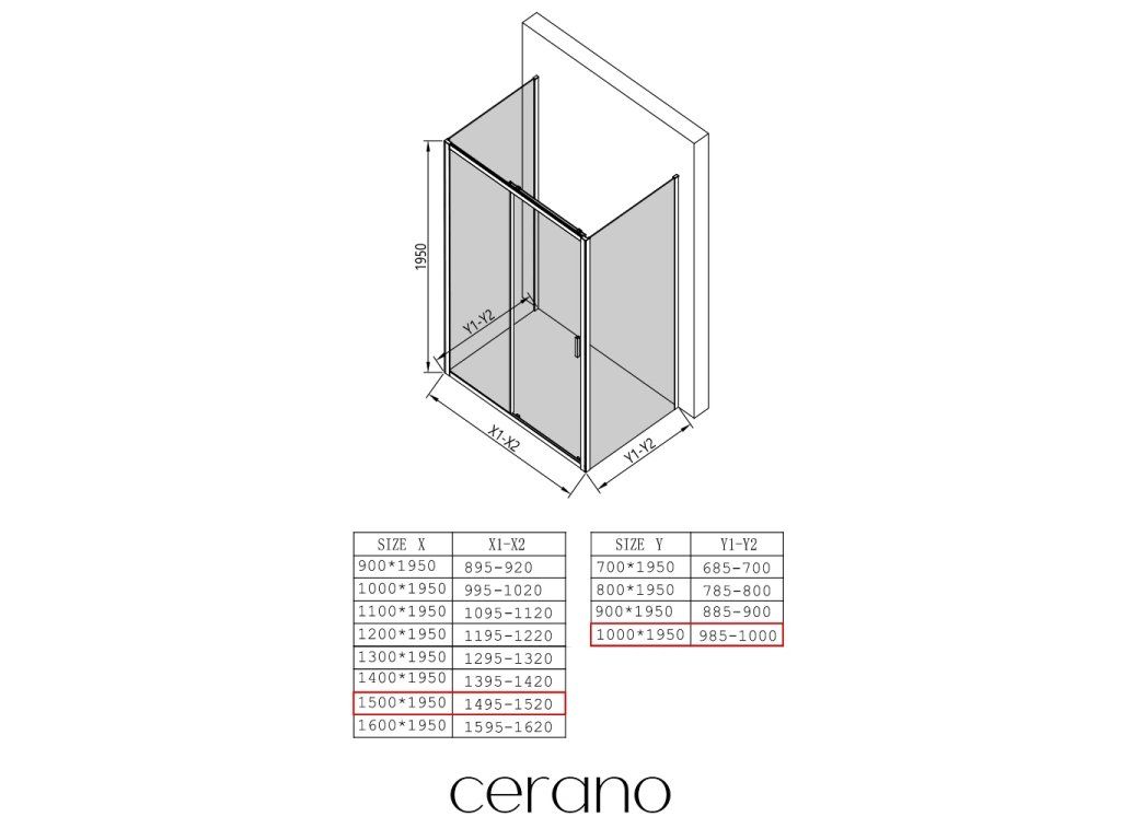 V rámci tejto série ponúkame širokú škálu rozmerov, aby sme uspokojili rôzne potreby našich zákazníkov. Všetky sprchové kúty, dvere a zásteny značky CERANO sú plne kompatibilné so sprchovými vaničkami CERANO v rovnakých rozmeroch, čo zaisťuje bezproblémovú inštaláciu a dokonalé zladenie. Sprchovací kút je možné navyše inštalovať flexibilne – buď na zodpovedajúcu sprchovú vaničku, alebo priamo na podlahu podľa vašich preferencií a možností kúpeľne.