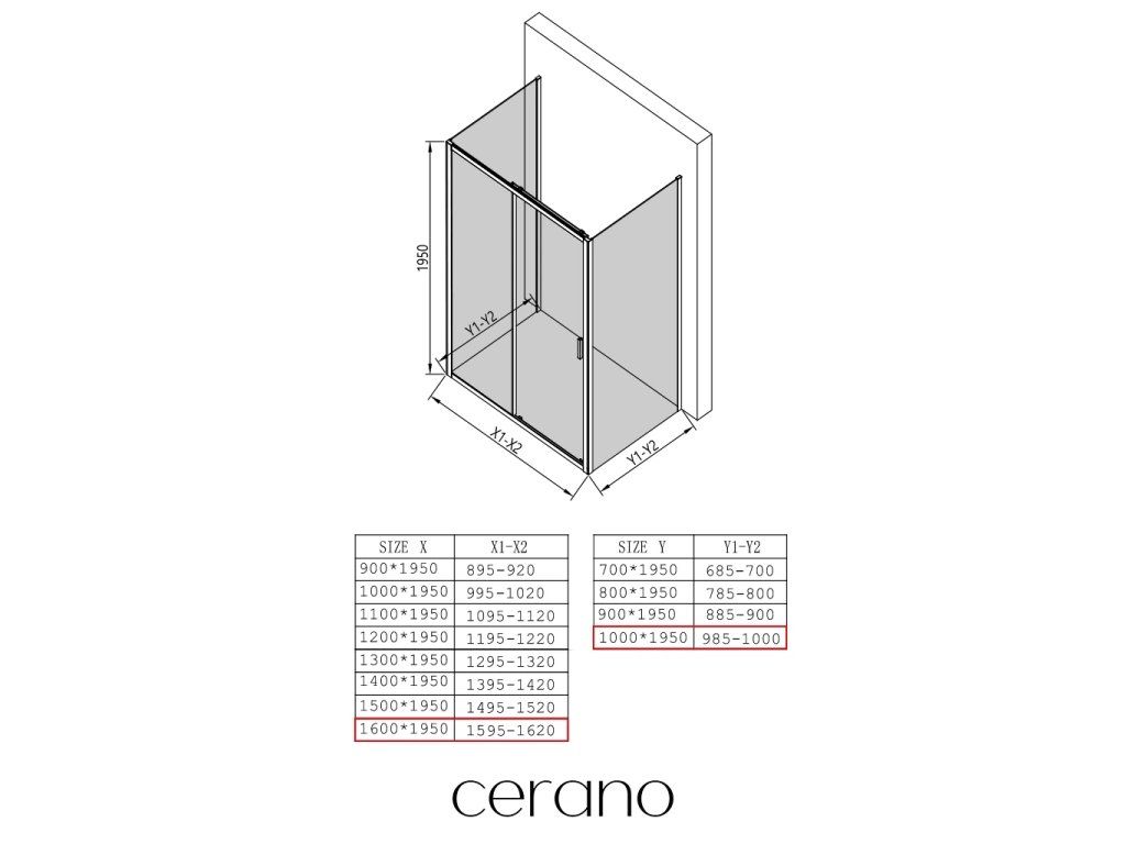 Niektoré zásteny značky CERANO je možné kombinovať s dverami z inej série, ale vo všeobecnosti to neodporúčame.