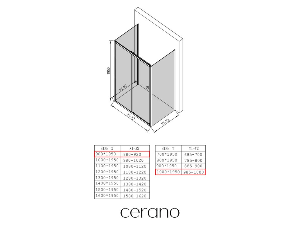 Niektoré zásteny značky CERANO je možné kombinovať s dverami z inej série, ale vo všeobecnosti to neodporúčame.