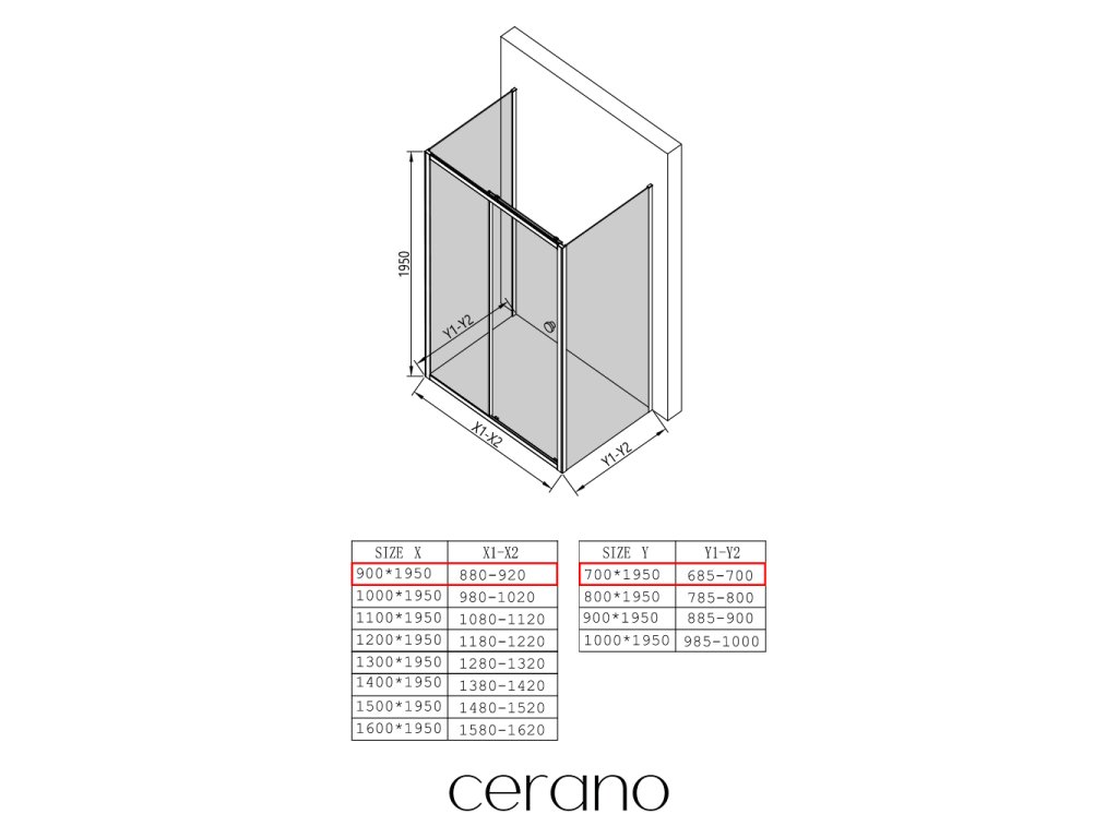 V rámci tejto série ponúkame širokú škálu rozmerov, aby sme uspokojili rôzne potreby našich zákazníkov. Všetky sprchové kúty, dvere a zásteny značky CERANO sú plne kompatibilné so sprchovými vaničkami CERANO v rovnakých rozmeroch, čo zaisťuje bezproblémovú inštaláciu a dokonalé zladenie. Sprchovací kút je možné navyše inštalovať flexibilne – buď na zodpovedajúcu sprchovú vaničku, alebo priamo na podlahu podľa vašich preferencií a možností kúpeľne.