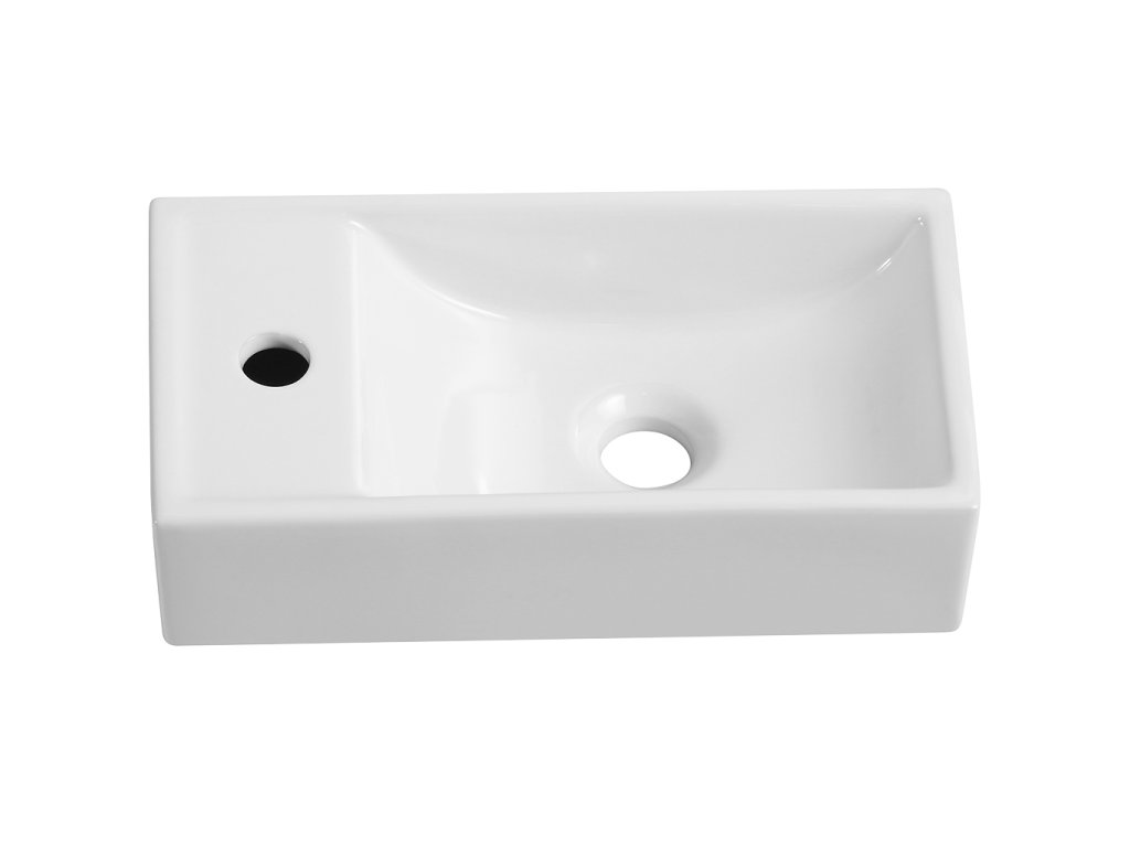 CERANO - Umývadlo keramické Giovanni, závesné ľavé - biela lesklá - 41x22,5 cm