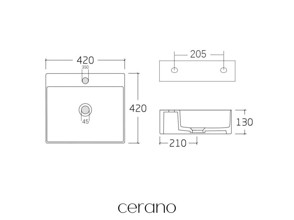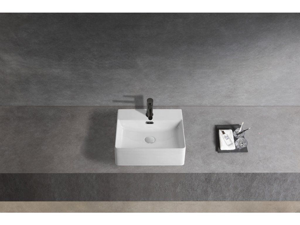 CERANO - Umývadlo keramické - nástenné aj na dosku - Peno - biela lesklá - 42x42,5 cm