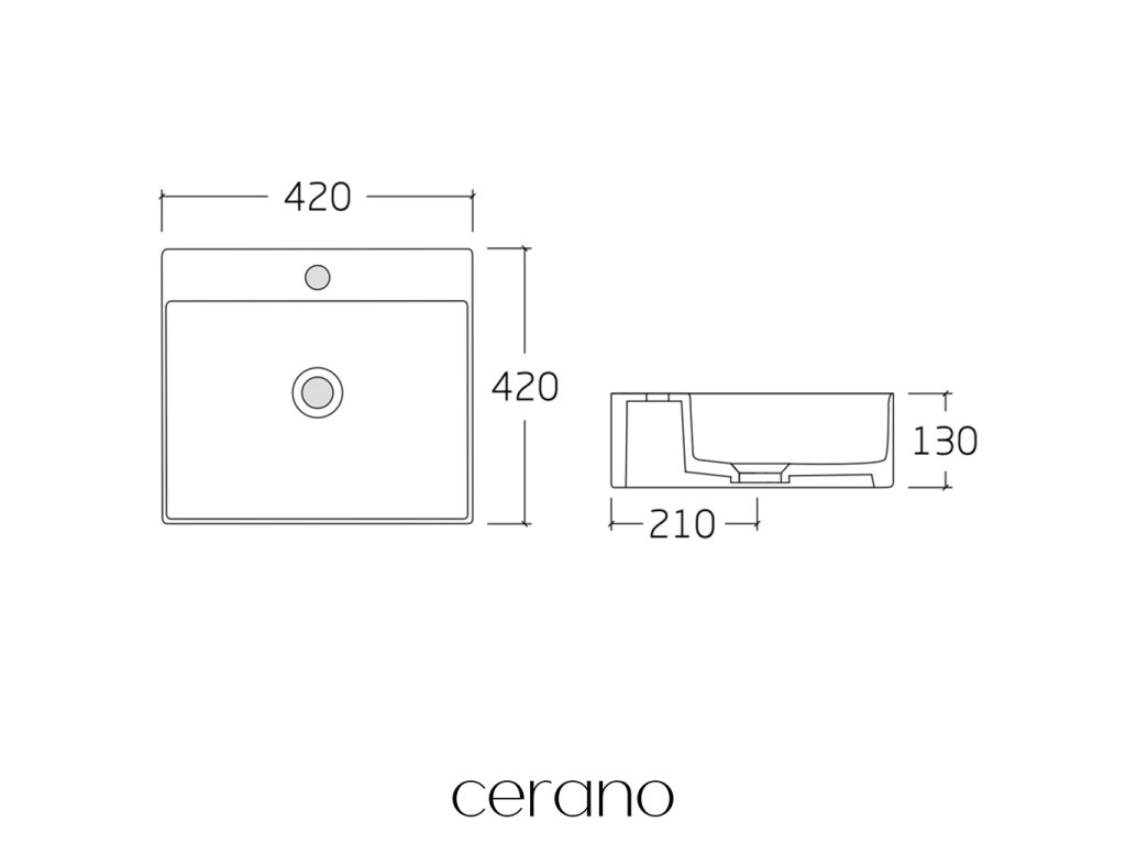 CERANO - Umývadlo keramické - nástenné aj na dosku - Peno - biela lesklá - 42x42 cm