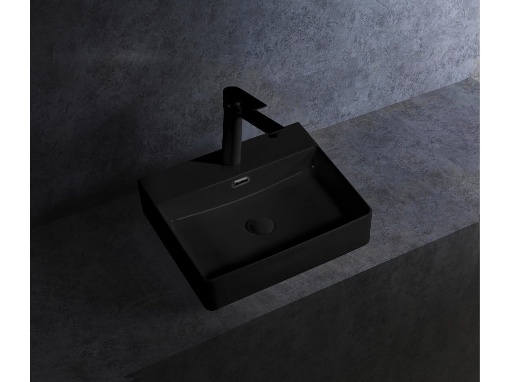 CERANO - Umývadlo keramické Peno - nástenné - čierna matná - 52x42 cm