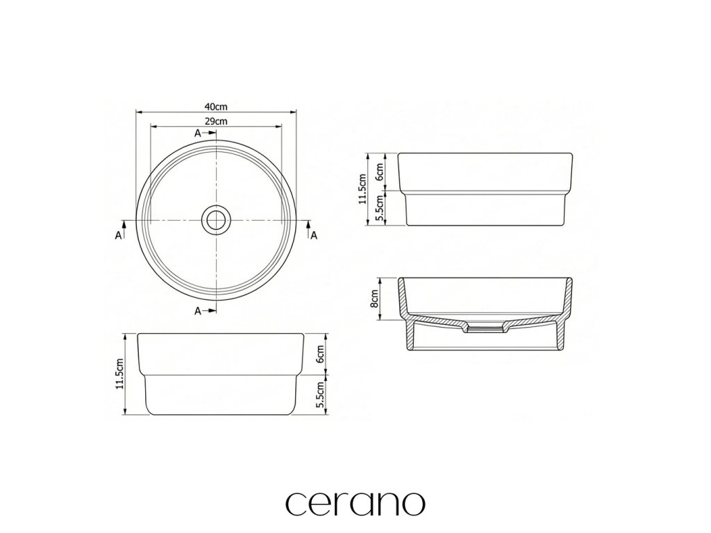 CERANO - Umývadlo keramické Sonora - polozápustné a na dosku - biela lesklá - ⌀ 40 cm