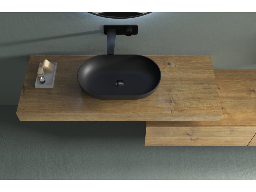 CERANO - Umývadlo z liateho mramoru Atria - na dosku - čierna matná - 60x40 cm