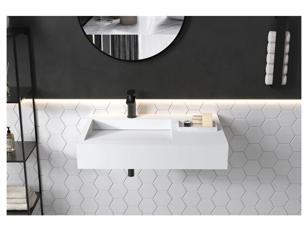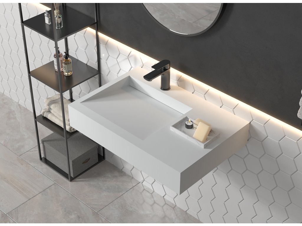 Umývadlá z liateho mramoru sú dodávané bez otvoru pre batériu. V prípade potreby si ho môžete jednoducho zhotoviť sami – napríklad vyvŕtaním. Vďaka tomu máte možnosť zvoliť si umiestnenie a typ batérie podľa vlastných predstáv.