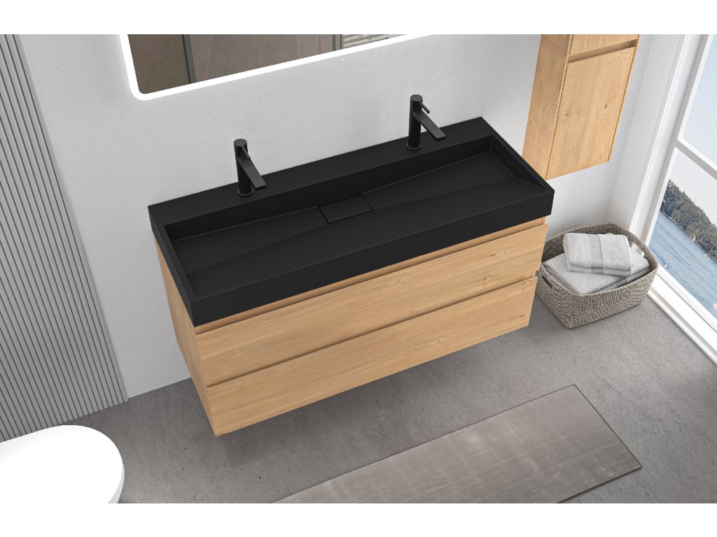CERANO - Umývadlo z liateho mramoru Vita - nástenné aj na dosku - 2 otvory pre batériu - čierna matná - 120x46 cm