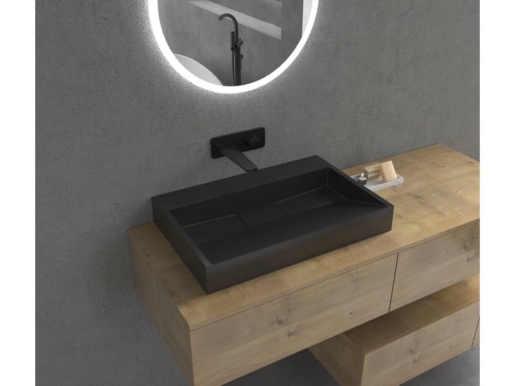 CERANO - Umývadlo z liateho mramoru Vita - nástenné aj na dosku - čierna matná - 60x37 cm
