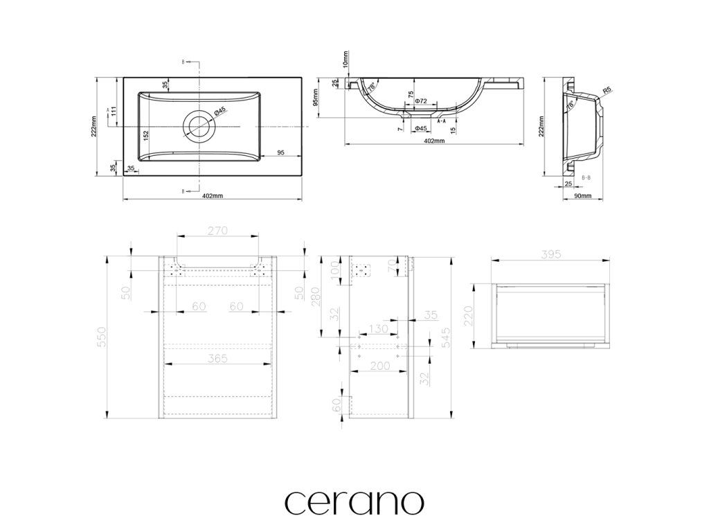 CERANO - Umývadlová skrinka pre WC Sora - dub medový + umývadlo z lit. Mramoru - biela matná - 40x57, 5x22 cm