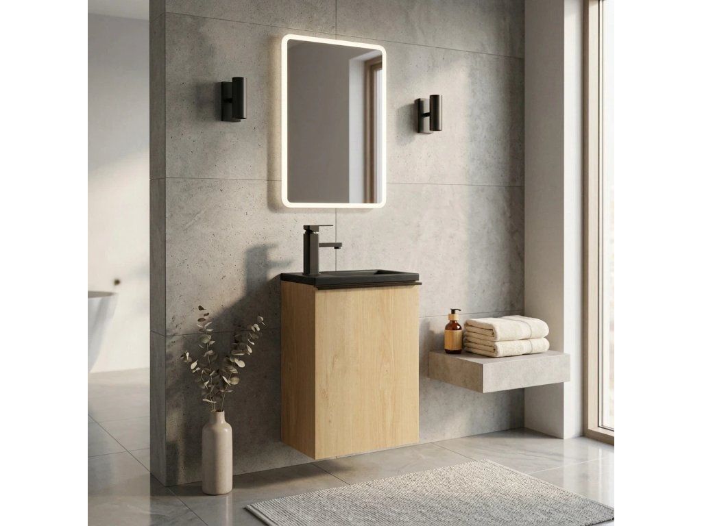 CERANO - Umývadlová skrinka pre WC Zola - dub medový + umývadlo z lit. Mramoru - čierna matná - 40x55x23, 5 cm