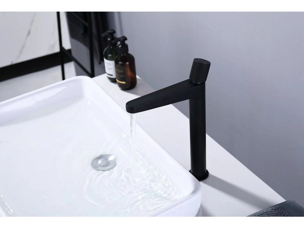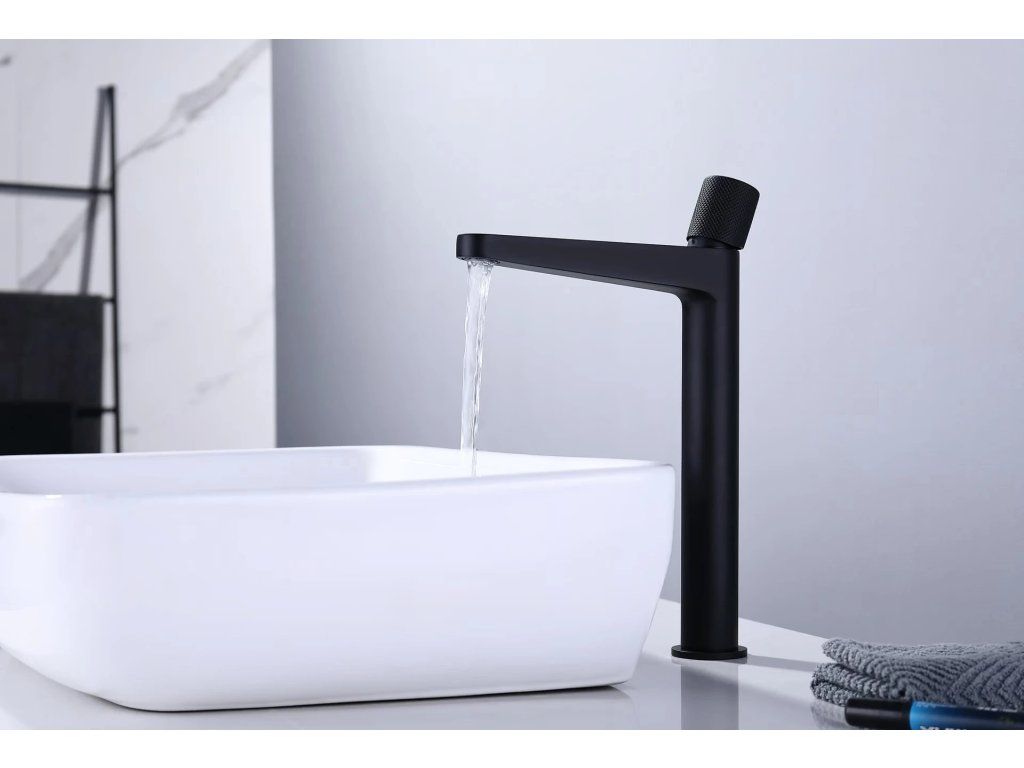 CERANO - Umývadlová stojanková batéria Loreta Grip - vysoká - čierna matná