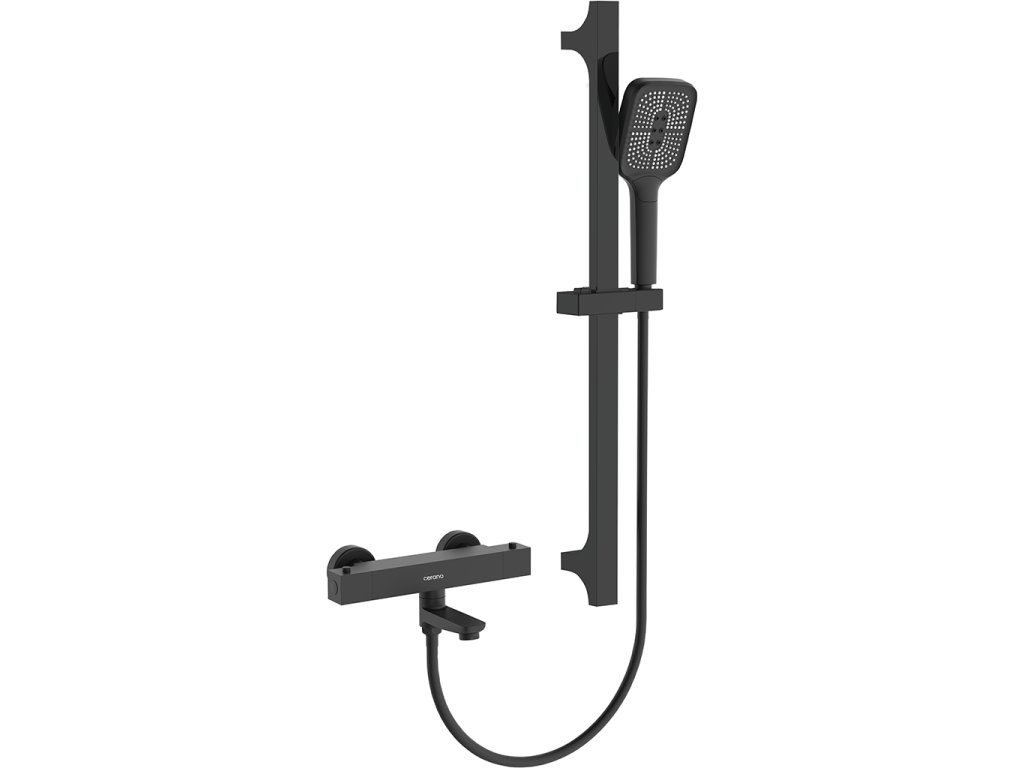 CERANO - Vaňová nástenná batéria Lorena s príslušenstvom - termostatická - otočný výtok - čierna matná