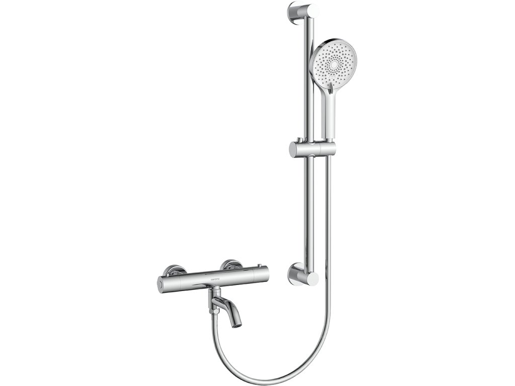 CERANO - Vaňová nástenná batéria Selma s príslušenstvom - termostatická - otočný výtok - chróm