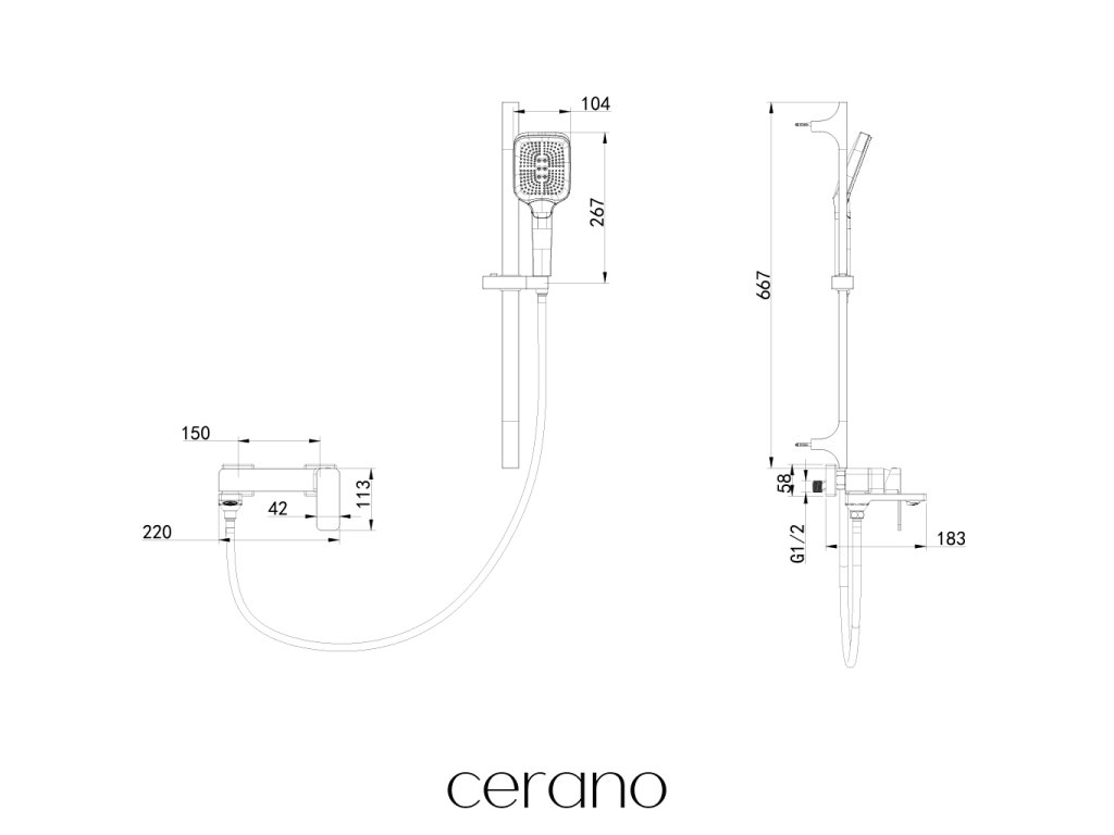 CERANO - Vaňová nástenná batéria Zenira s príslušenstvom - chróm