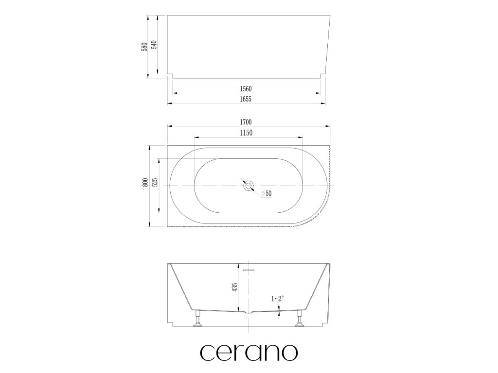 CERANO - Voľne stojaca akrylátová vaňa Aira, ľavá - biela lesklá - 170x80 cm