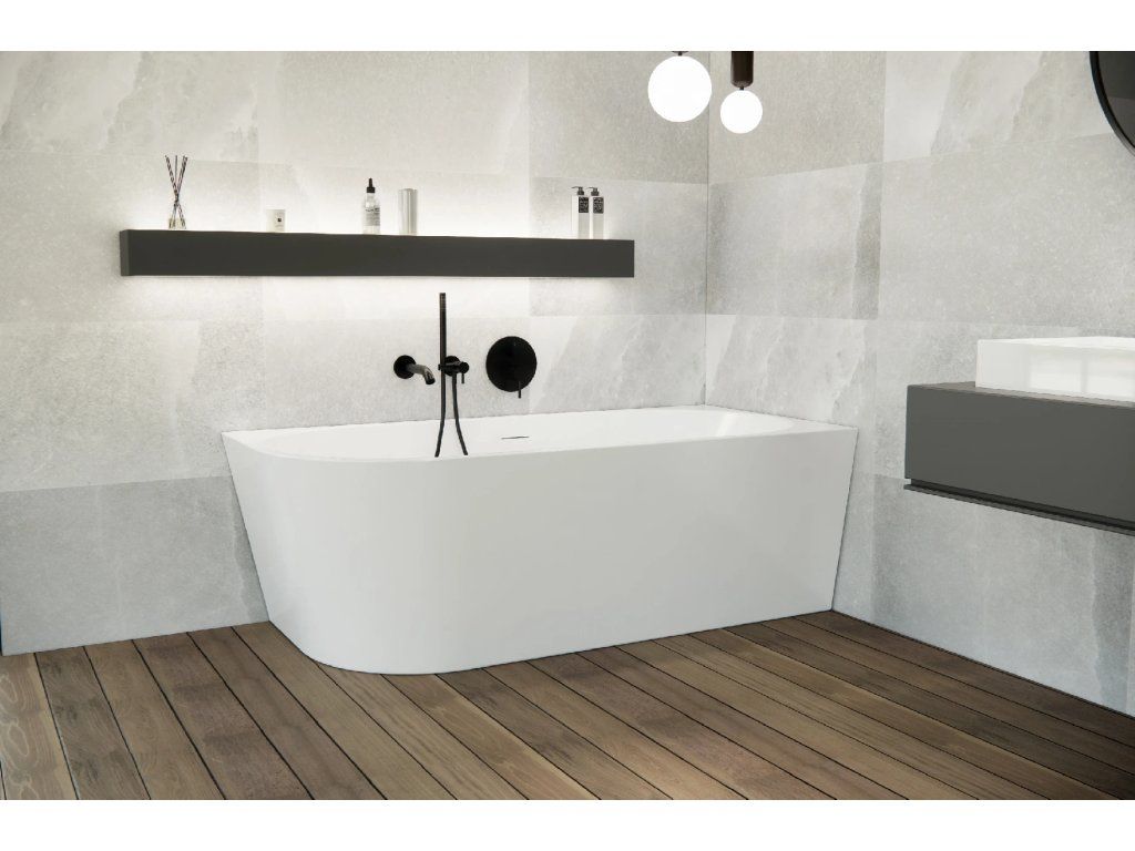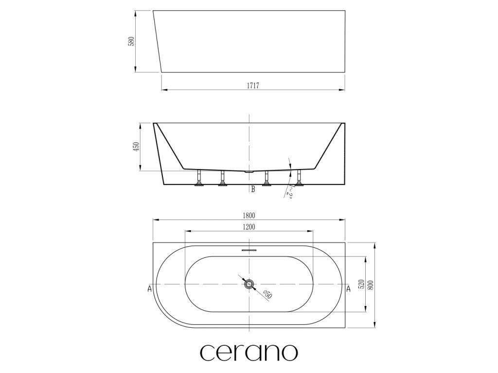 CERANO - Voľne stojaca akrylátová vaňa Bianco, pravá - biela lesklá - 180x80 cm
