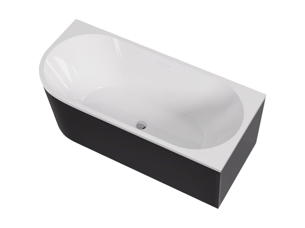 CERANO - Voľne stojaca akrylátová vaňa Bianco, pravá - čierna matná/biela lesklá - 150x75 cm