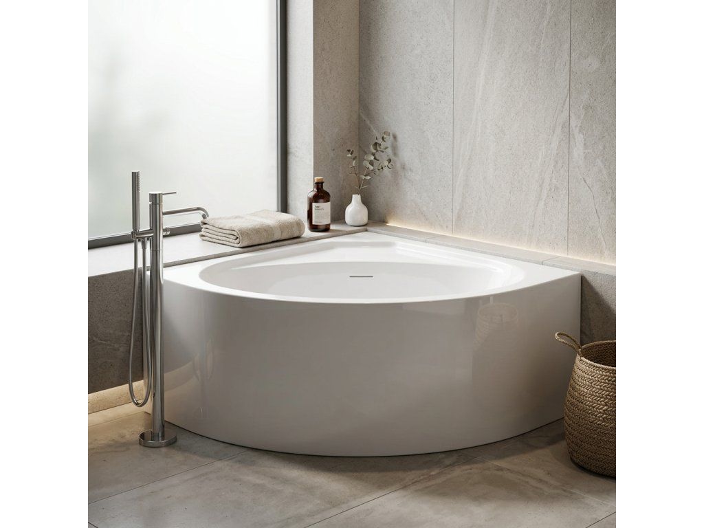 CERANO - Voľne stojaca akrylátová vaňa Cora, rohová - biela lesklá - 134x134 cm