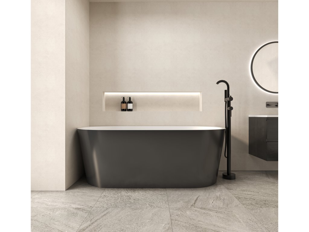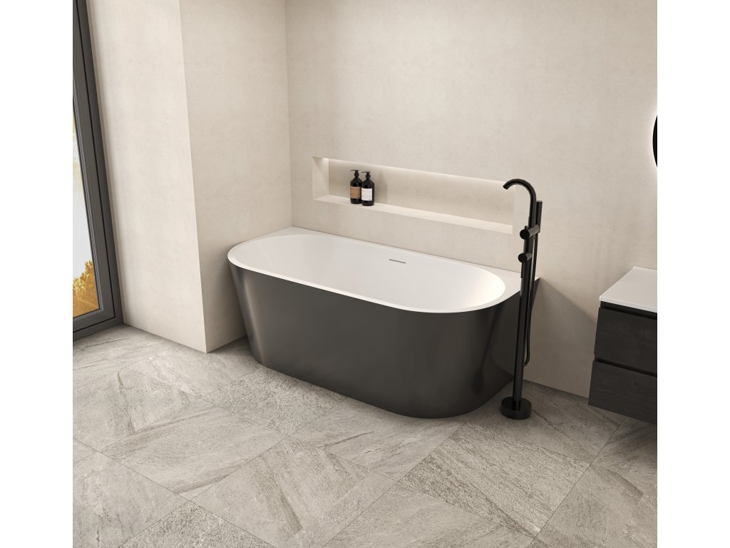 CERANO - Voľne stojaca akrylátová vaňa Grazia - čierna matná/biela lesklá - 150x70 cm