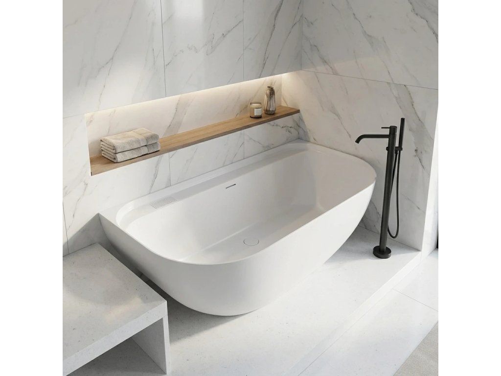 CERANO - Voľne stojaca vaňa z liateho mramoru Valeria, nástenná - biela matná - 150x80 cm