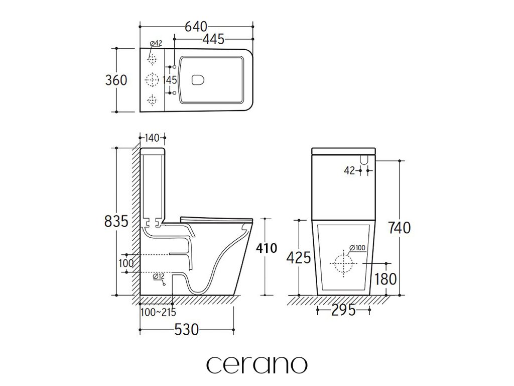 CERANO - WC kombi Bruno, Rimless + Slim/UF sedátko - spodný/zadný odpad - biela lesklá - 64x36 cm
