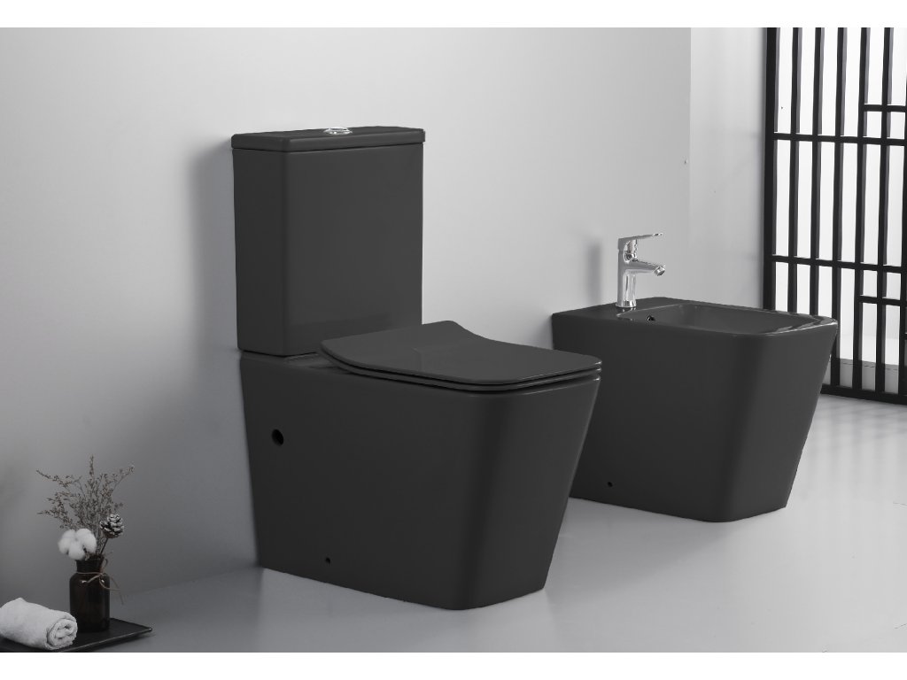 CERANO - WC kombi Bruno, Rimless + Slim / UF sedátko - spodný / zadný odpad - čierna matná - 64x36 cm
