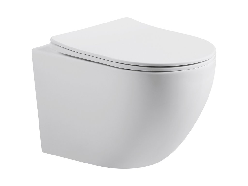 CERANO - WC závesné Cesso, Vortex Rimless + Slim/UF sedátko - biela matná - 49x36 cm