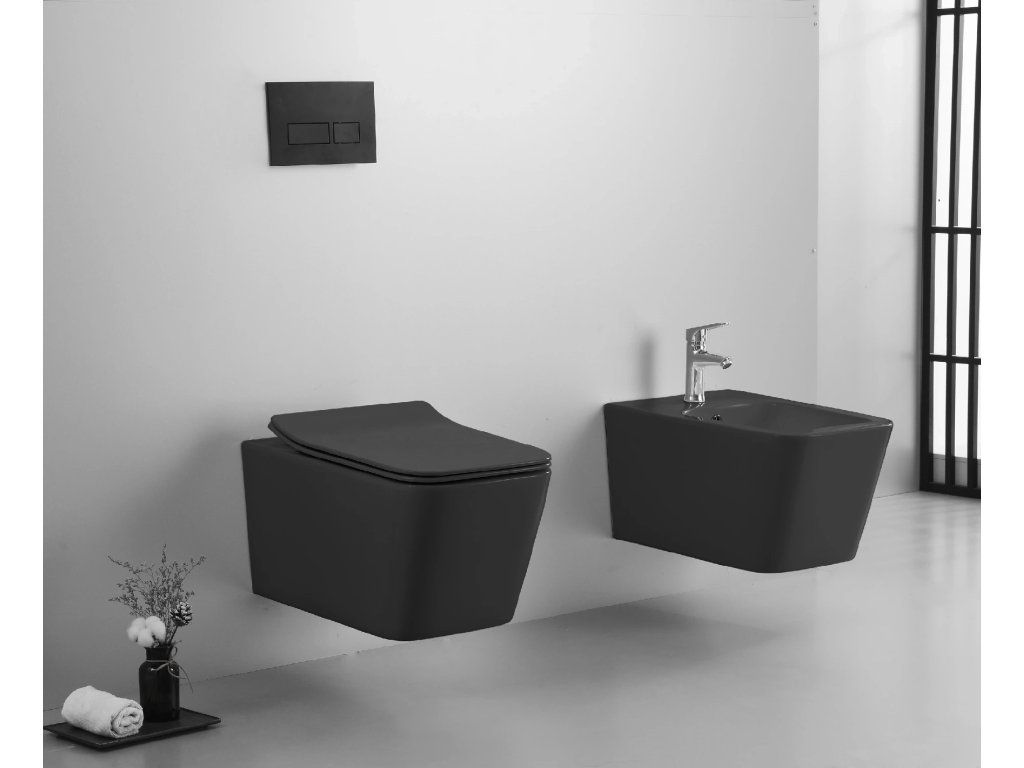 CERANO - WC závesné Forte, Rimless + Slim/UF sedátko - čierna matná - 51x36 cm