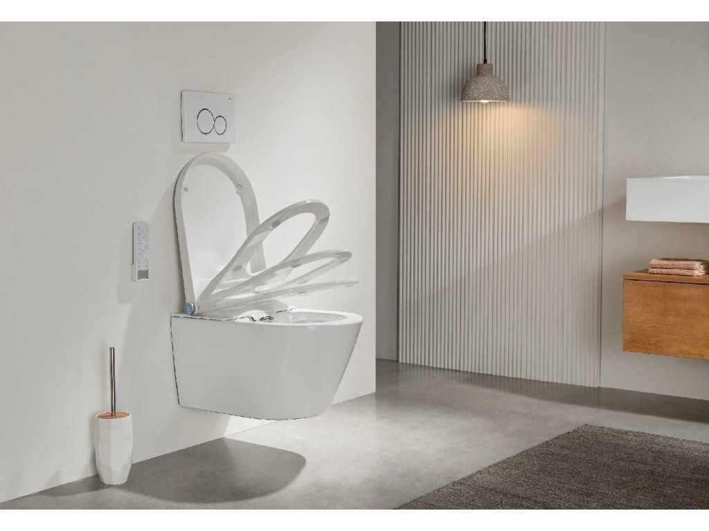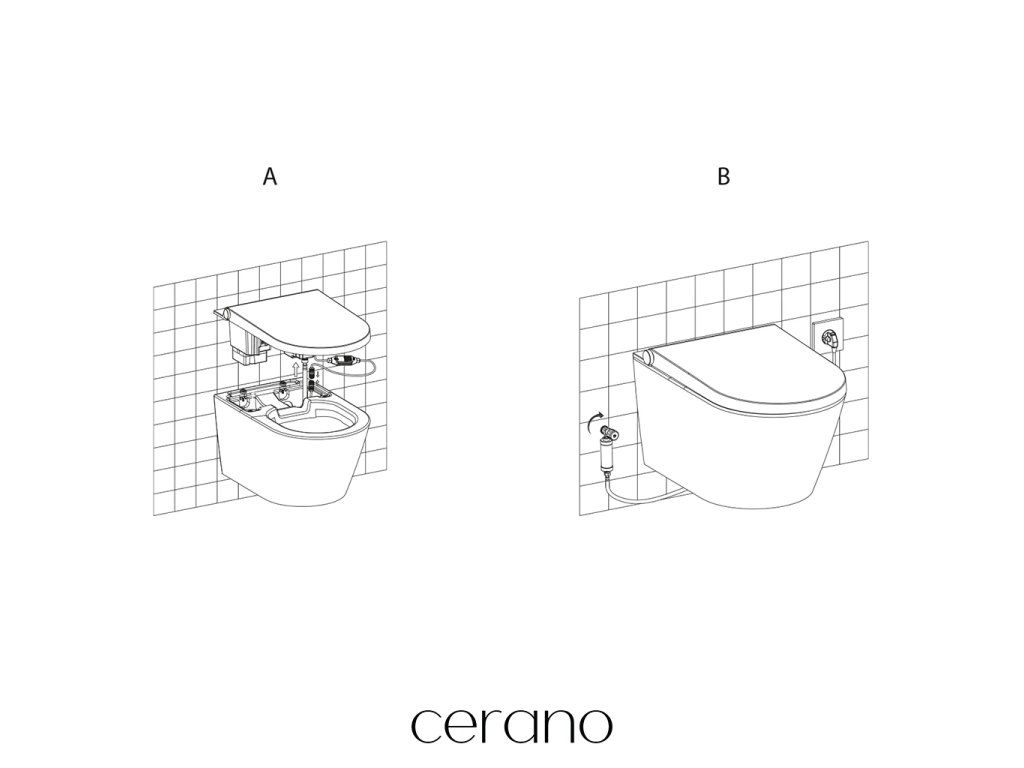 CERANO - WC závesné s integrovaným elektronickým bidetom Cronus Premium, Vortex Rimless 180 ° + UF sedátko - biela lesklá - 59,3x38,4 cm