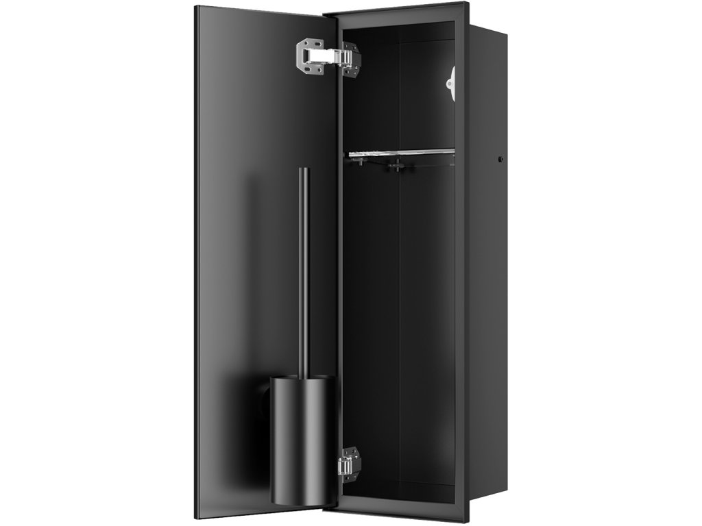 CERANO - Zápustná skrinka na toaletný papier Inova - do obkladu - 1 polica - čierna matná - 61,4x19,6x16 cm