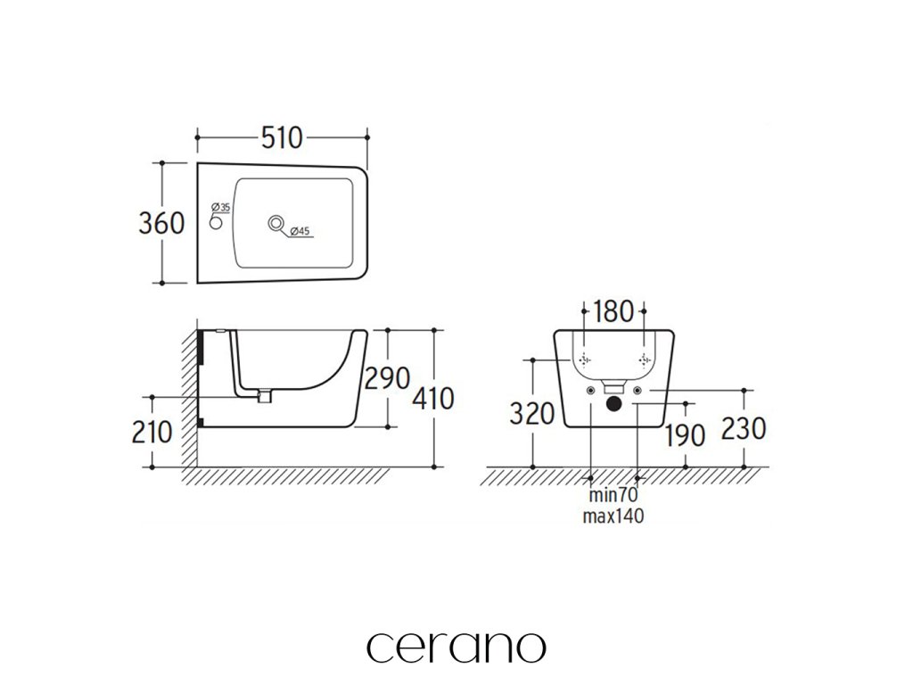 Závesné bidety Cerano sa ľahko montujú vďaka svojim univerzálnym rozmerom. Sú kompatibilné k systémom od známych značiek ako Geberit, Grohe a Schwab. Vďaka tomu môže byť náš bidet bez ťažkostí inštalovaný do väčšiny existujúcich inštalačných rámov, ktoré sú na trhu.