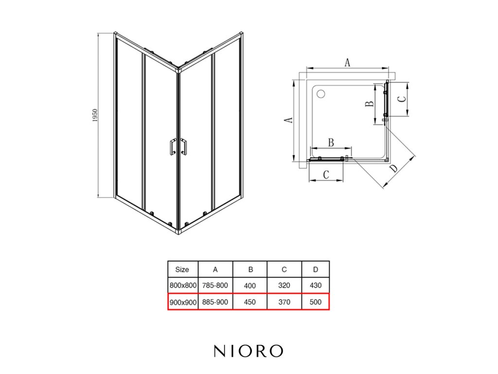 NIORO - Sprchovací kút Fabrizio L/P + FastInstall - 5 mm - chróm, transparentné sklo - 90x90x190 cm - posuvný